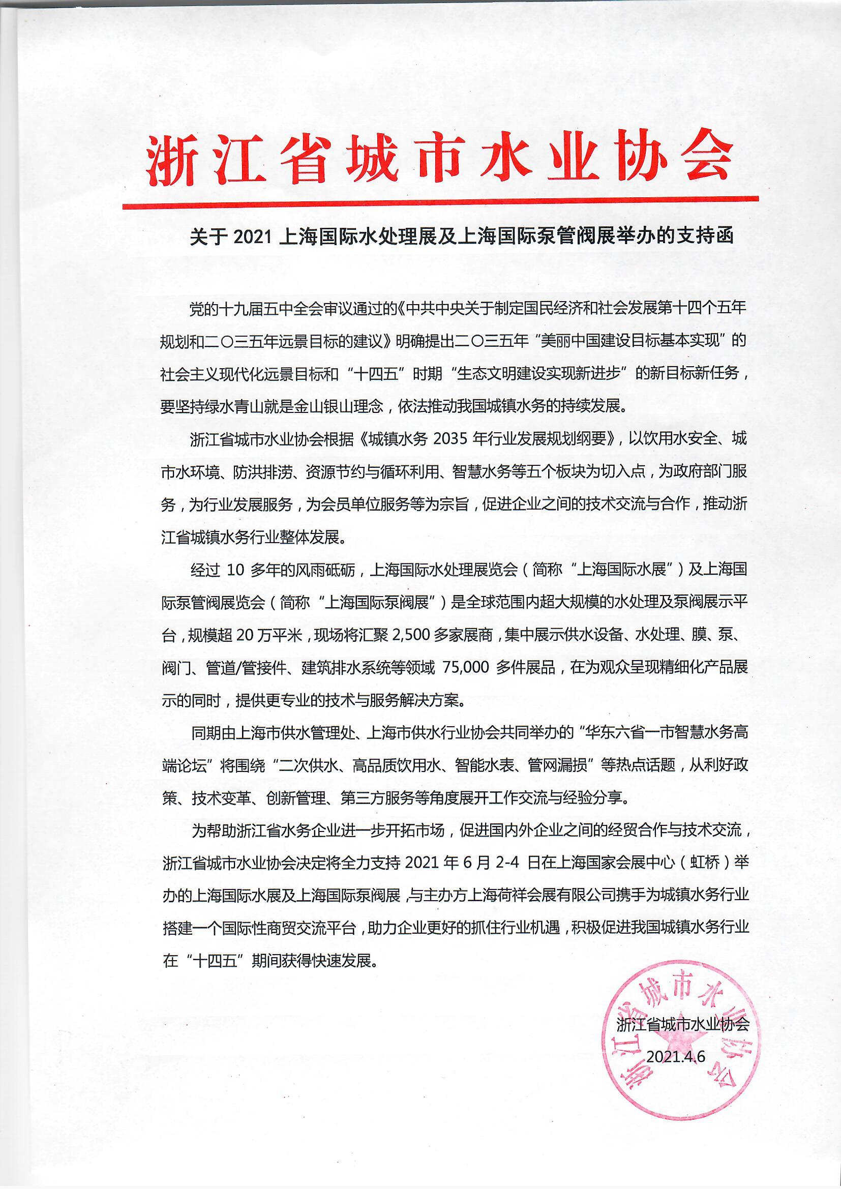 浙江省城市水業協會確認作為“上海國際水展及上海國際泵閥展”支持單位,攜手促進我國水務行業綠色發展!